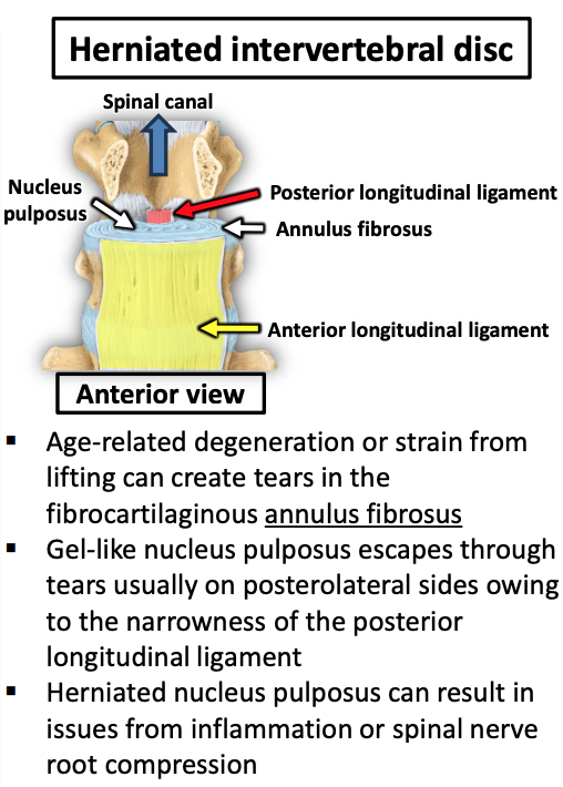 What does a tear in the fibrocartilage annulus fibrosis cause