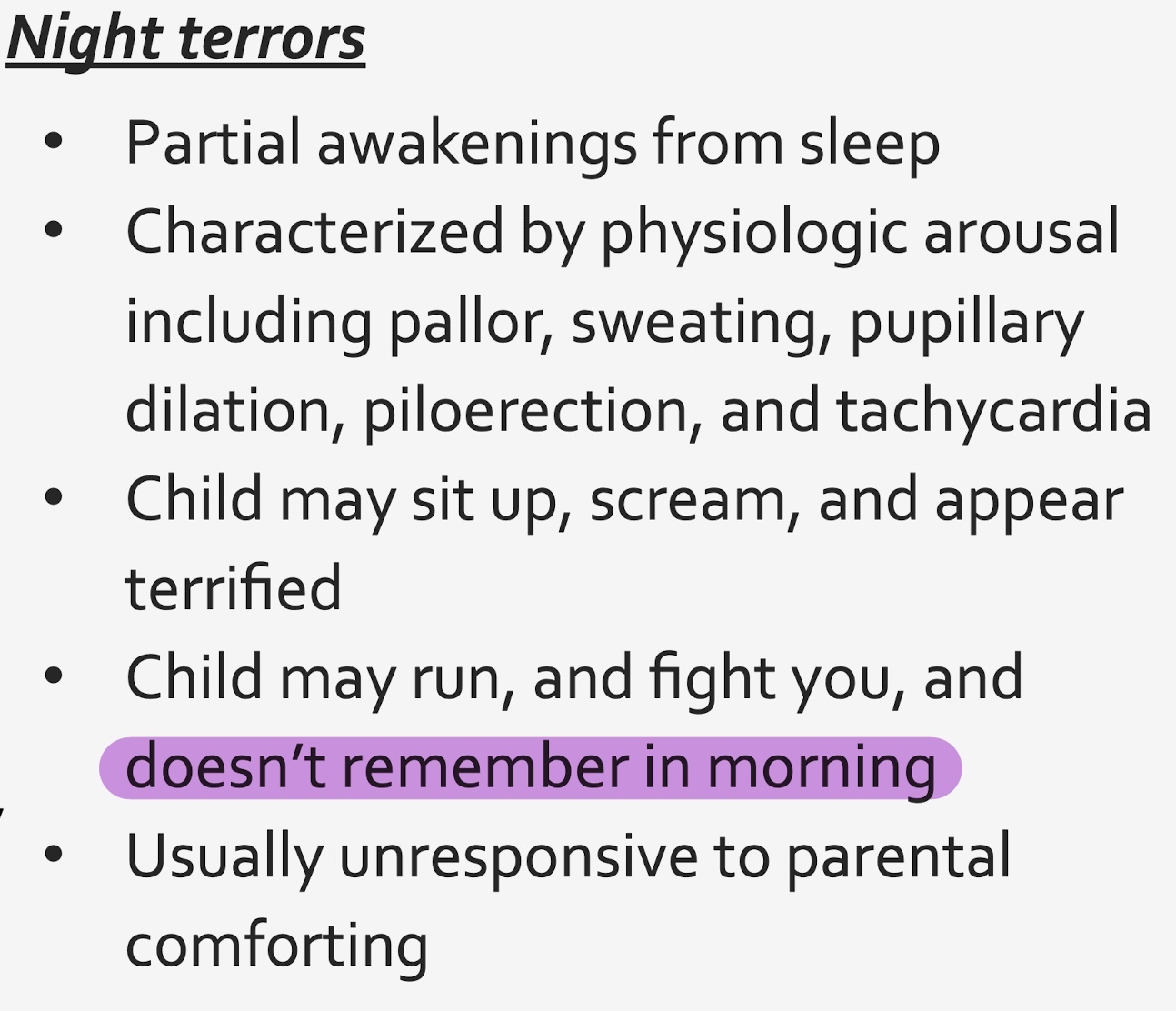 A parent asks when their kids night terrors will stop. You reassure them that 95% resolve on their own by age…