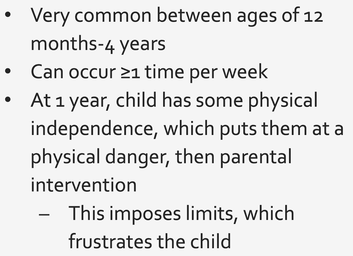 Begins around 6-8 months, but can last past 24 months.