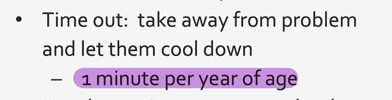 The general rule of thumb for time outs is () minute per year of age
