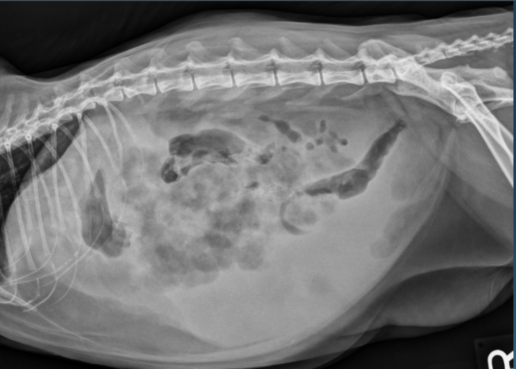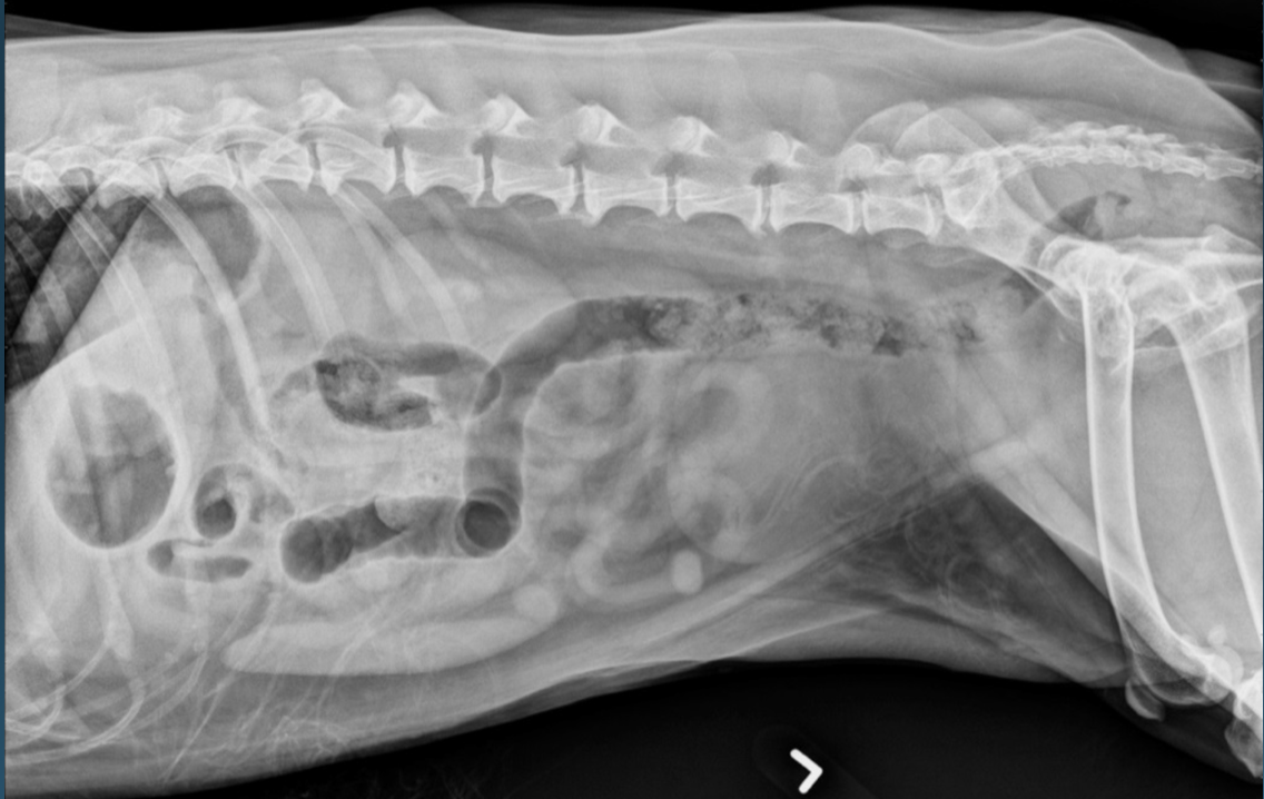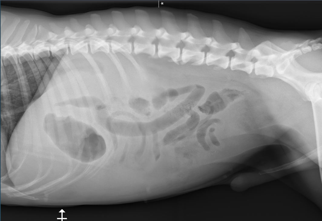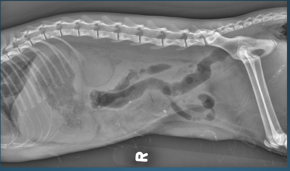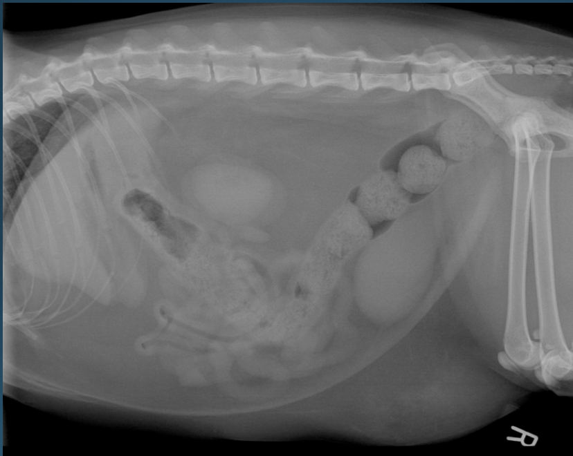 -left and right lateral radiographs will redistribute GI gas
