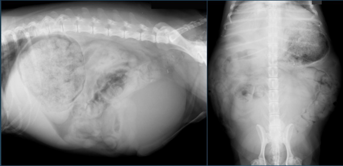 -increased fluid or soft tissue in abdomen