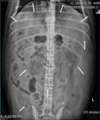 What are the radiographic findings of peritonitis?