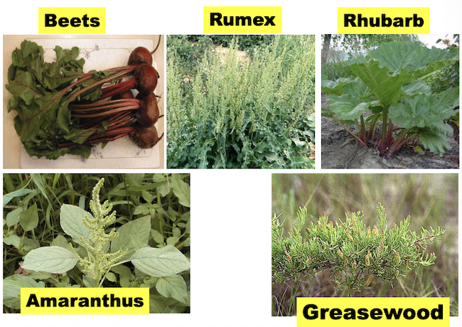 Beets and docks (Rumex sp.), Halogeton sp., lamb’s