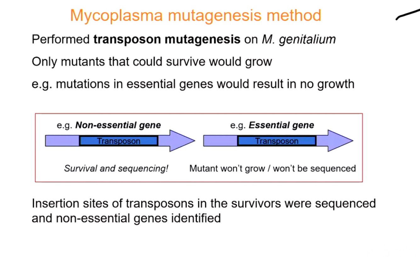Estimation of minimal genome by mutagenesis - MYCOPLASMA MUTAGENESIS METHOD