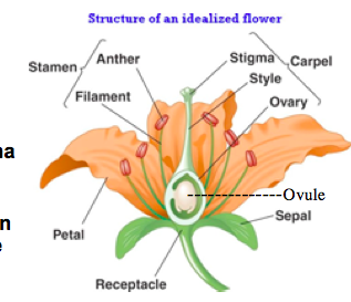 • Angiosperms - seed in a vessel (refers to the carpel).