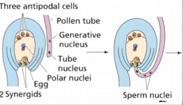• Pollen lands on stigma surface; pollen tube grows to the ovule