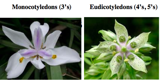 What are the differences betweed monocots and dicots?