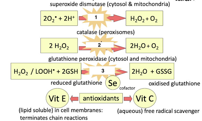 Non-enzymatic antioxidants: work in two different ways - they can just completely block or they can act as a scavenger. They can make free radicle inert by donating an electron. This then produces a much less dangerous free radicle.