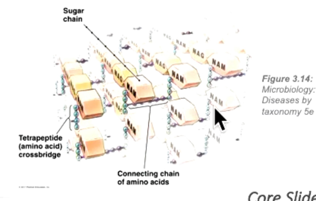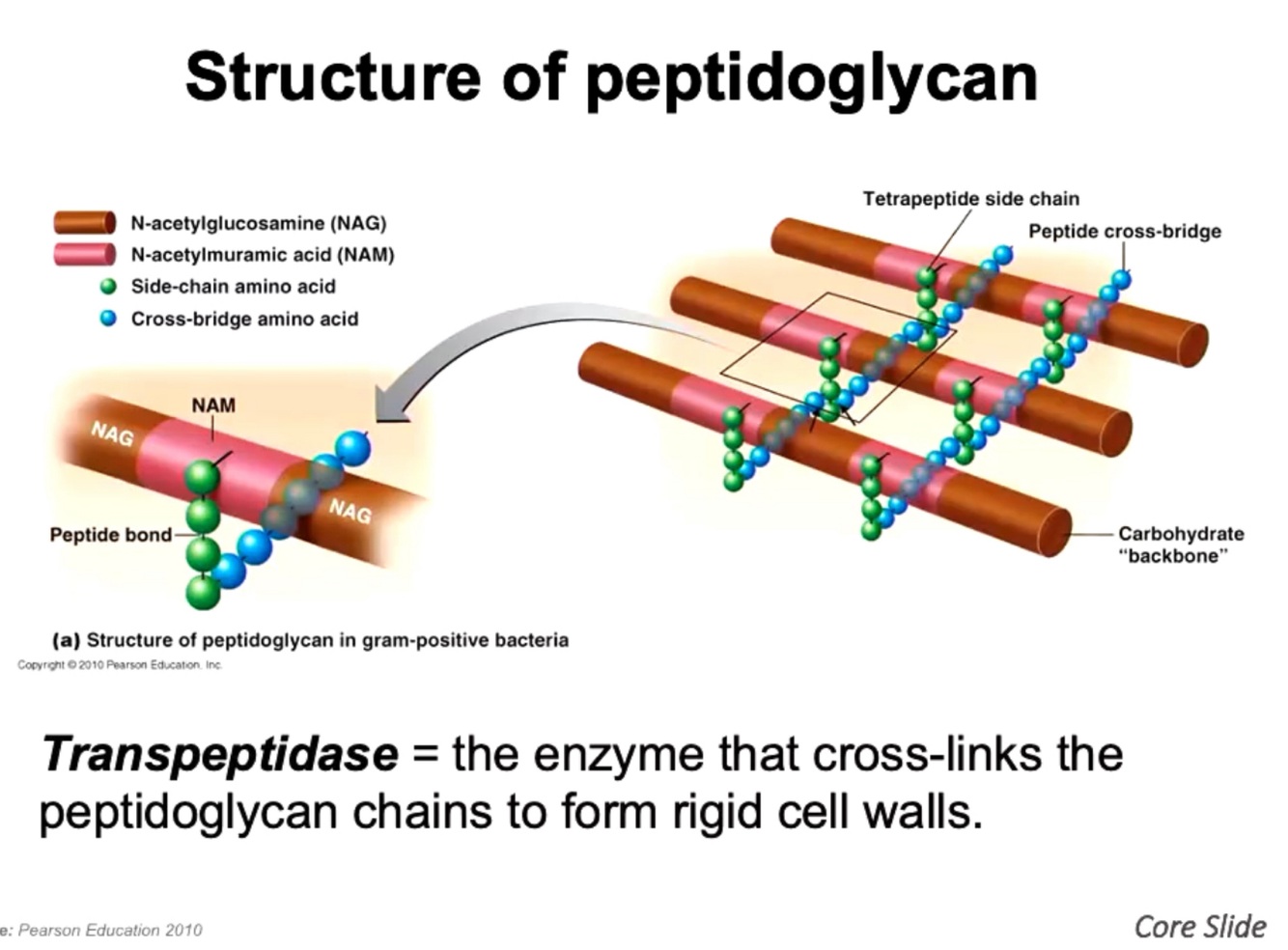 What enzyme catalyses the cross linking of the peptidoglycan chains to form rigid cell walls ?