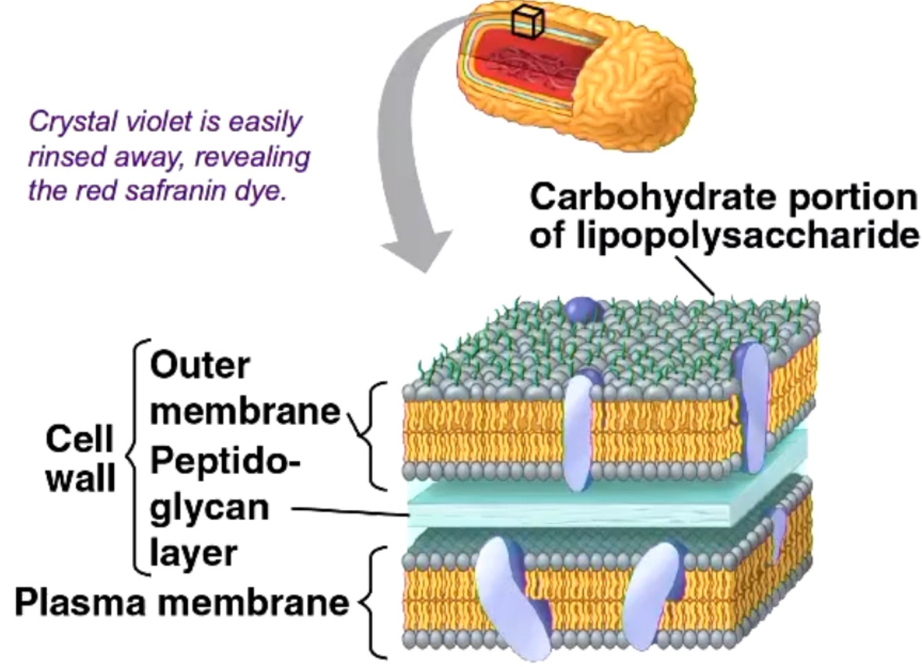 Structural differences between cell walls of gram-positive and gram-negative bacteria