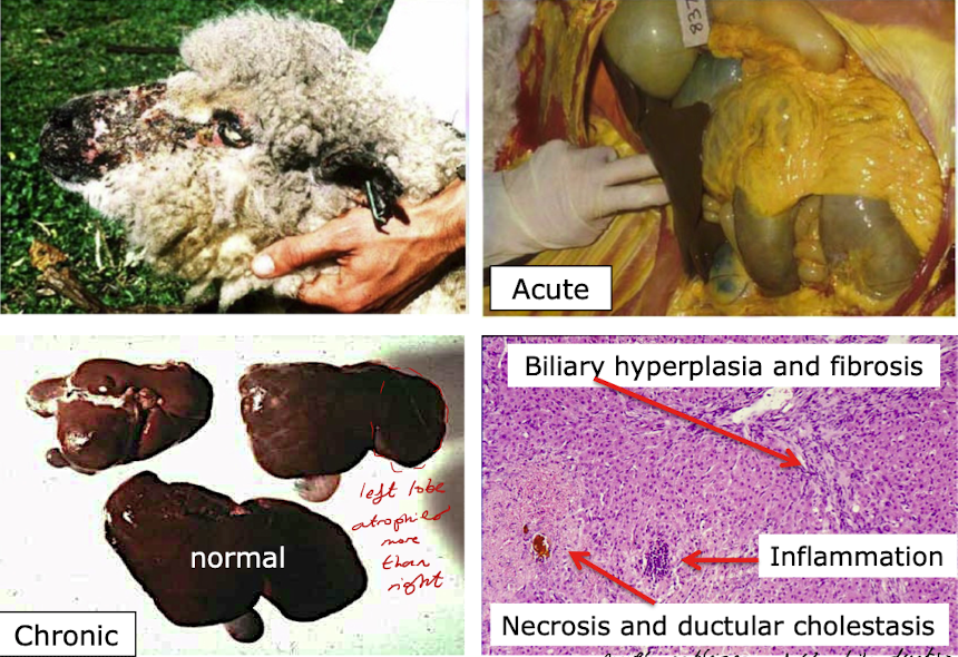 ii. ) jaundice, photosensitisation, swollen-yellow orange gall bladder is seen