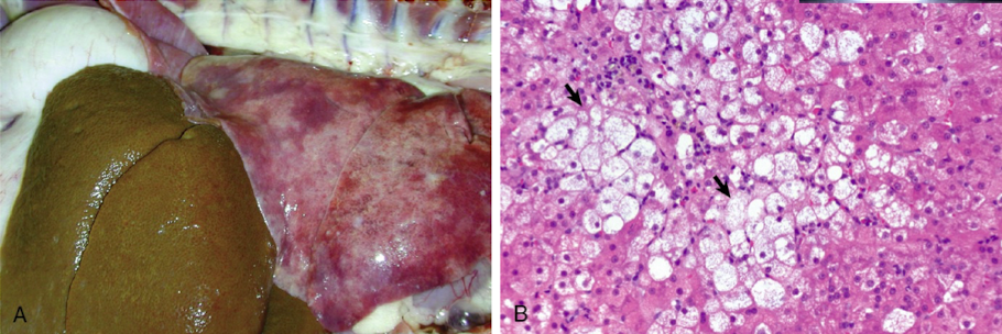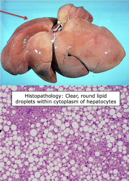 Hepatic lipidosis - caused by excessive mobilisation of triglycerides from adipose tissue