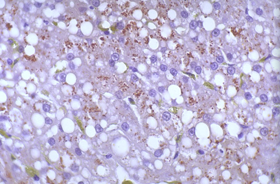 You are called out to a farm and you see some dead jaundiced sheep lying around. The farmer tells you they have been consuming perrenial ryegrass and he suspects they died of a toxin. On necropsy you have the following findings below.