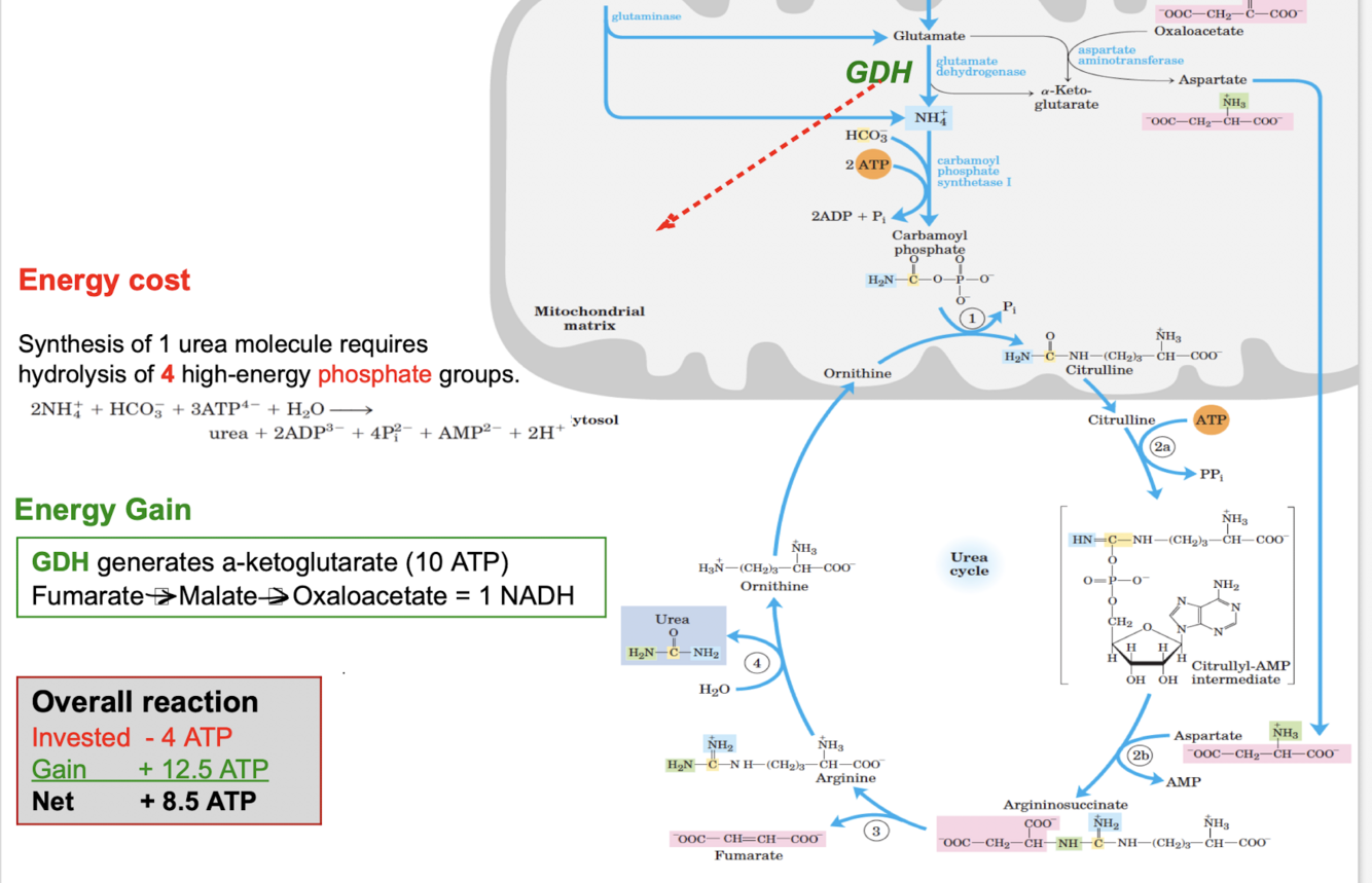 what is the energy cost and energy gain of the urea cycle?