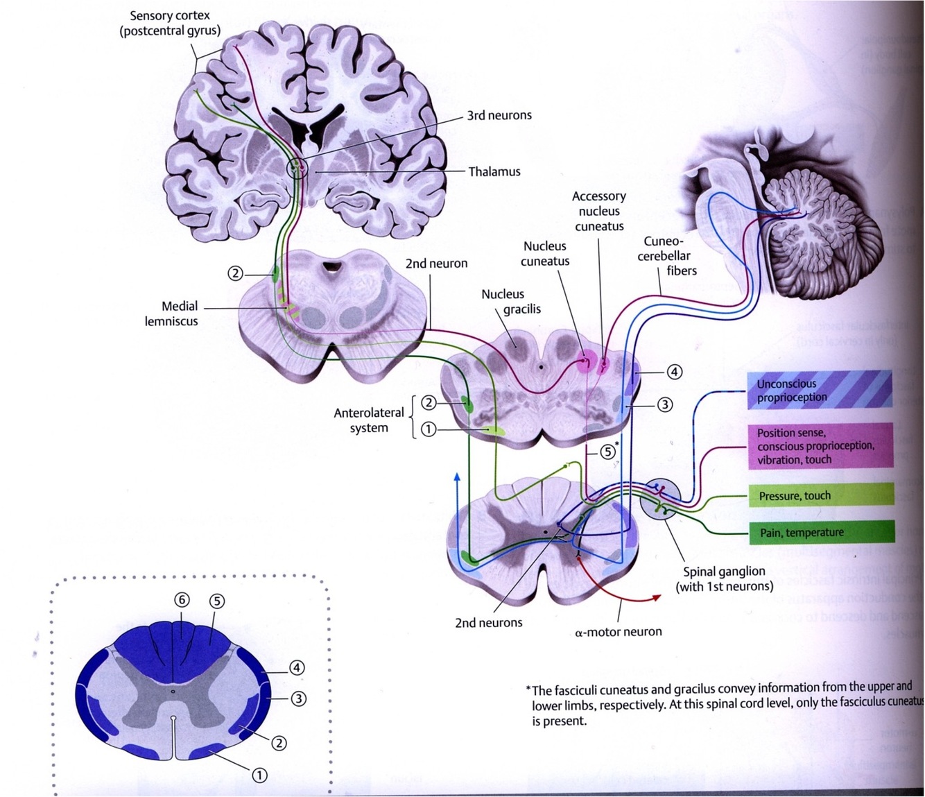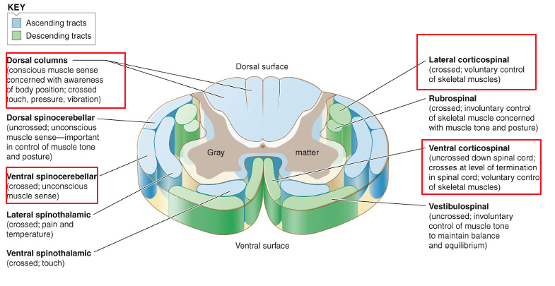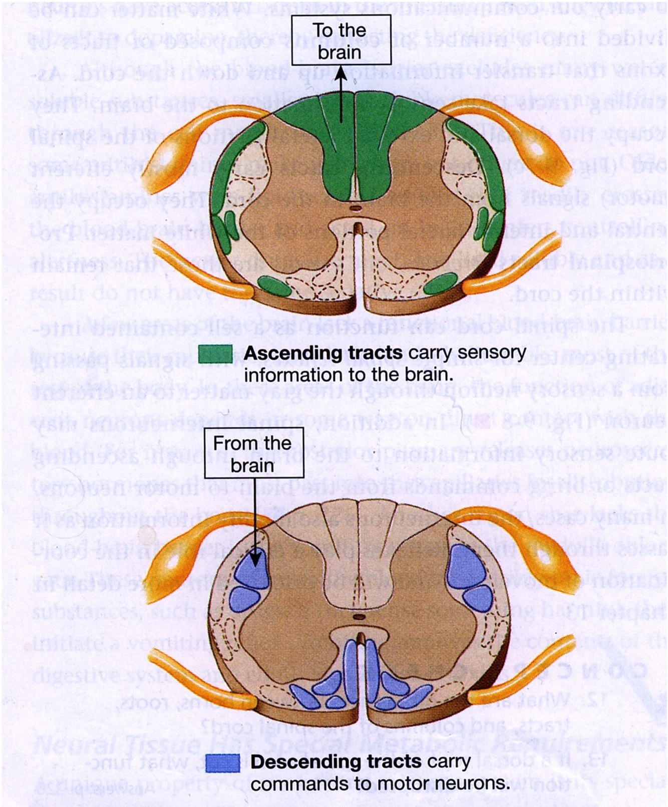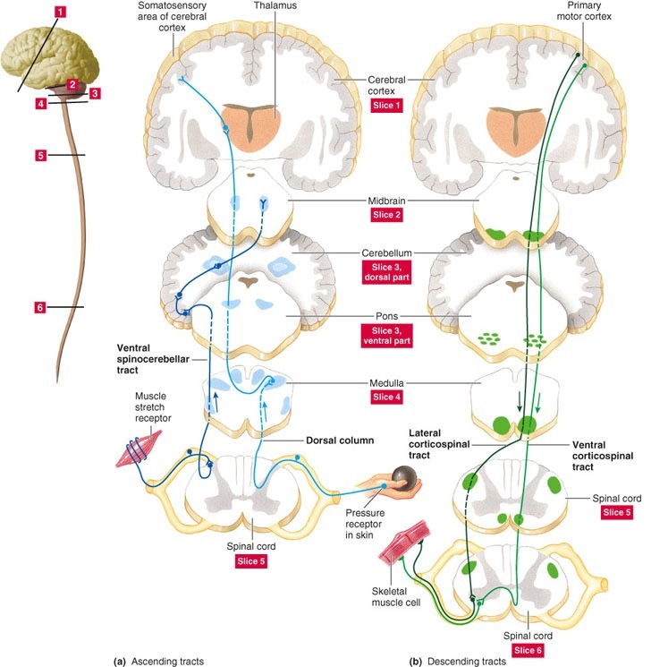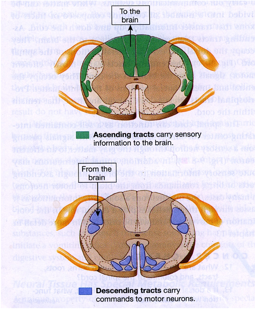 Ascending (cord to brain) tracts vs descending tracts (brain to effector neurons)