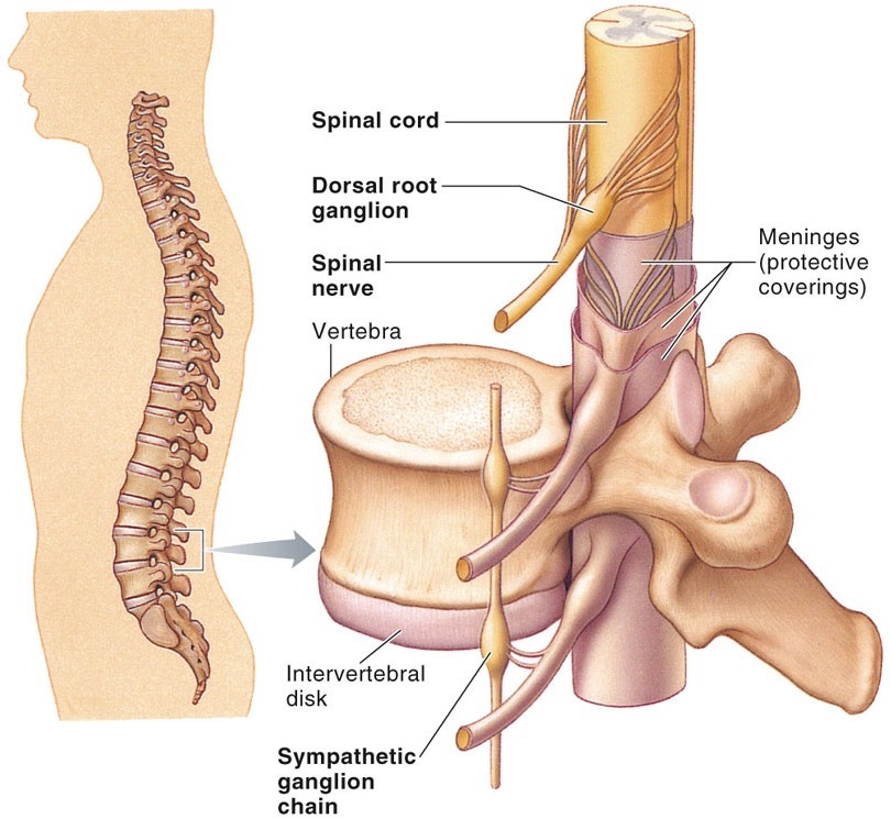 Each spinal nerve also contains nerve fibers for internal organs –> referred pain (Head’s zones)