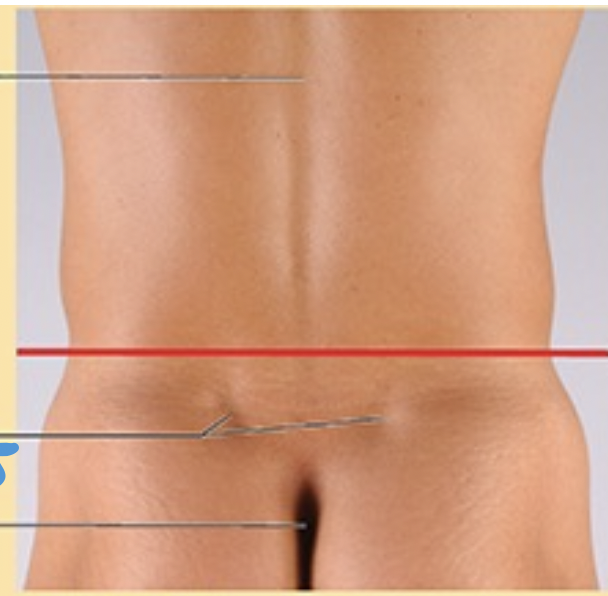 indicate supracristal plane (high points of iliac crests) crossing L4 spinous process and L4/5 IV disc