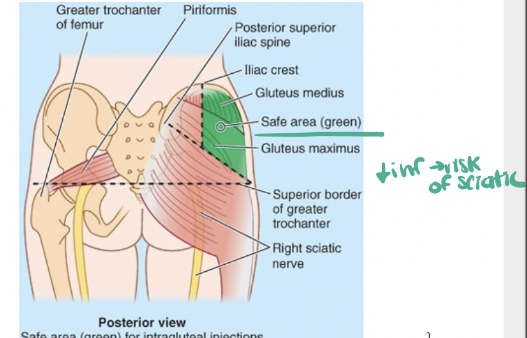 intramuscular injection of drugs because the gluteal muscles are thick and large, providing a large area for venous absorption of drugs.