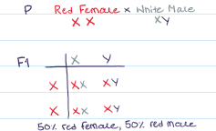 in Morgan’s first experiment, why were all the F1 progeny red for male and female?