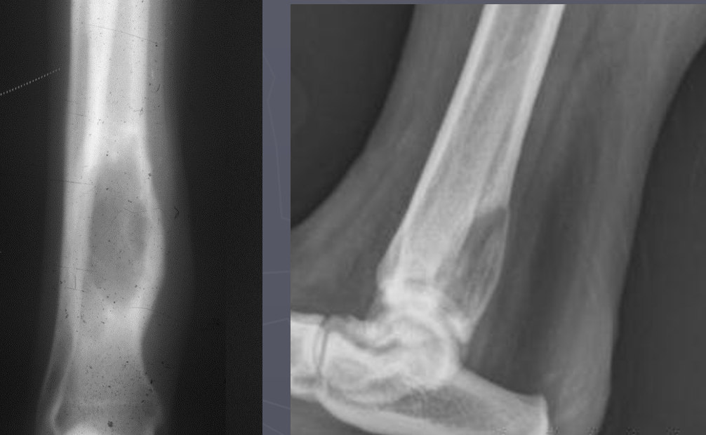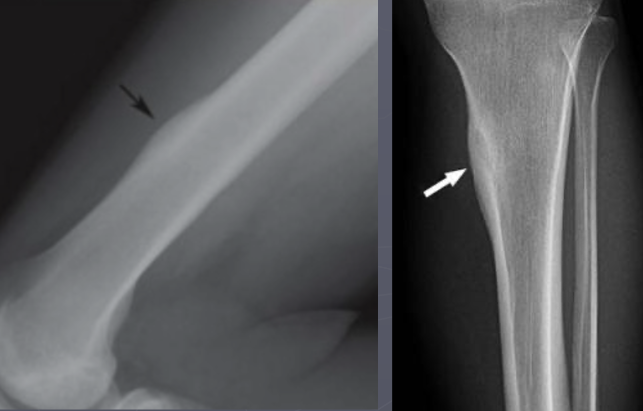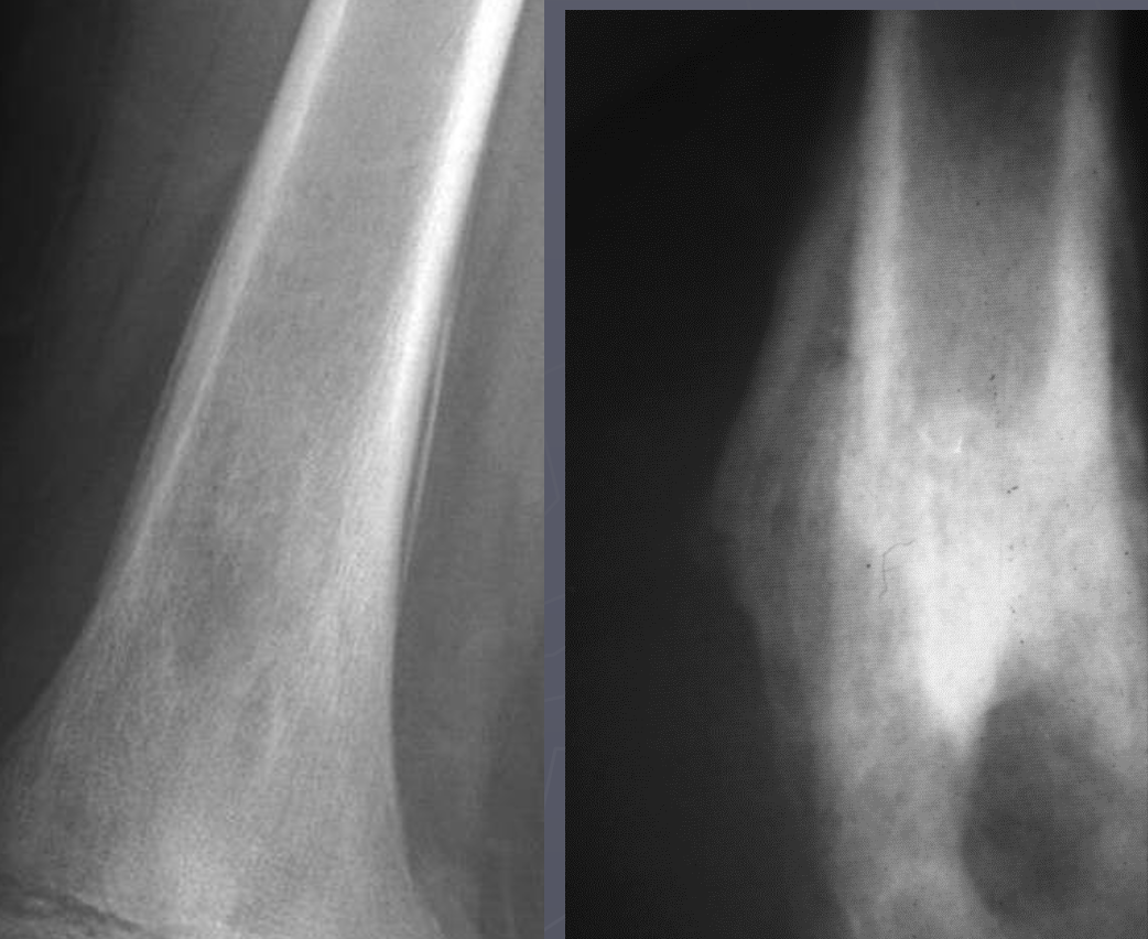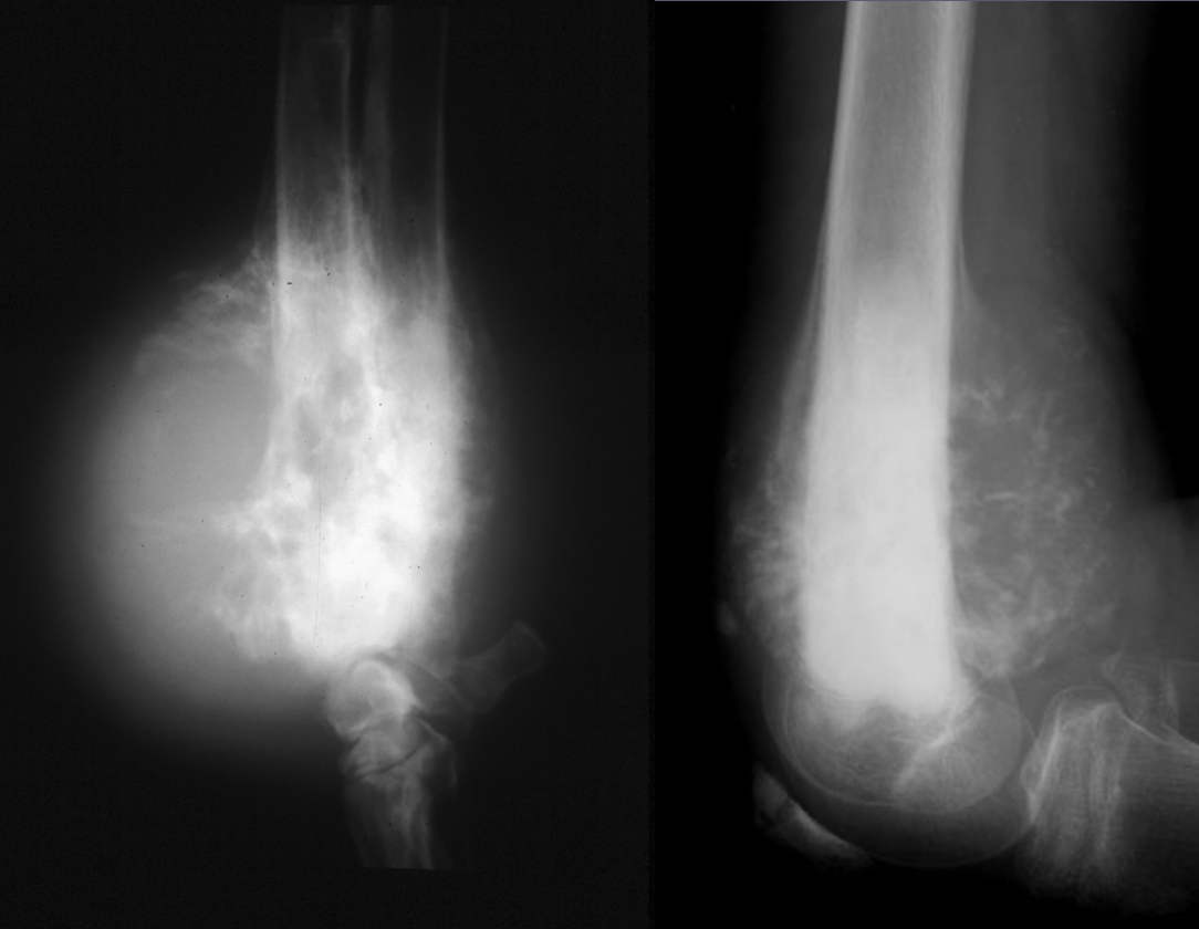 Left 2 radiographs: inactive; smooth, well defined margins
