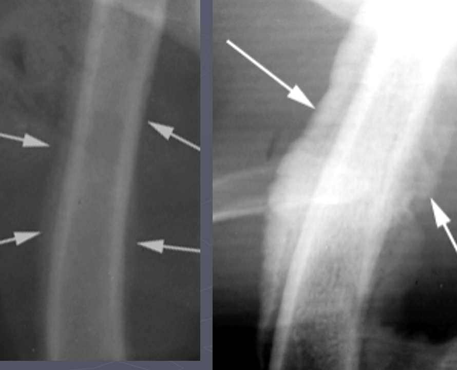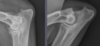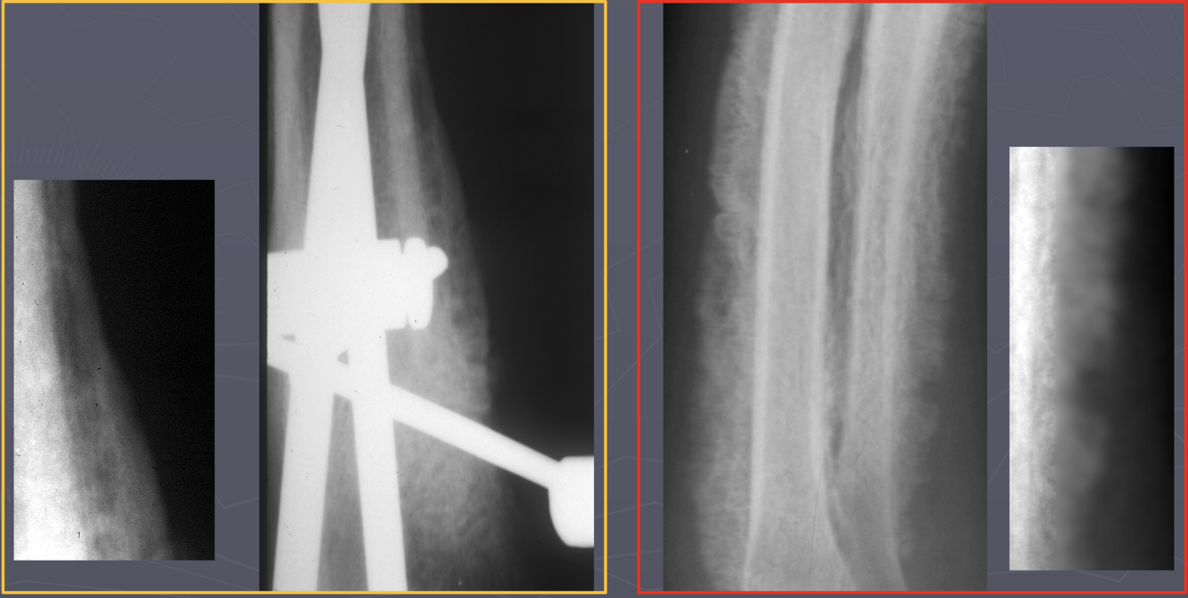 Right 2 radiographs: active; fuzzy, less sharp margins