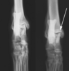 What is shown in this radiograph at the arrows?