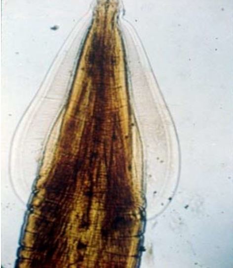Note the broad, arrow-shaped cervical alae, which are much more distinct than those found in T. canis.