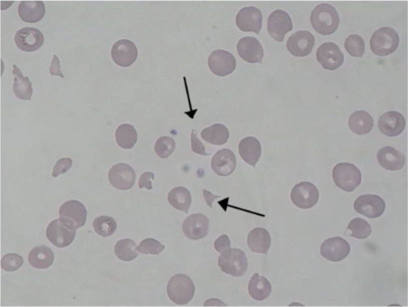 Disseminated coagulation leads to the formation of abnormal clots and fibrin deposits. These narrow blood vessels, causing RBCs to fragment.