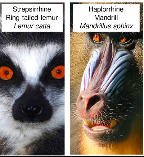 How is the nose different in Strepsirrhines and Haplorrhines?