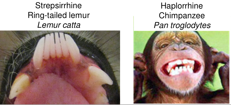 How are teeth different in Strepsirrhines and Haplorrhines?