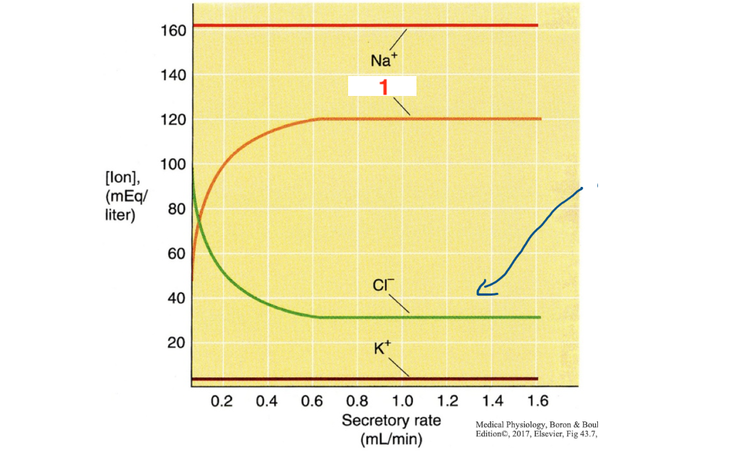 sodium, chloride and bicarbonate followed by the passive re-absorption of water