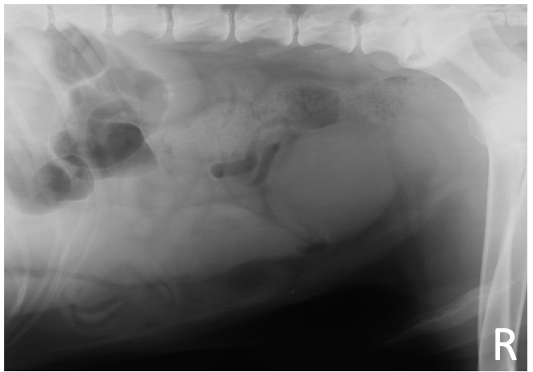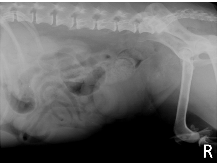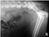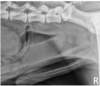 How does a cat’s prostate differ from a dog’s in terms of radiographic assessment?