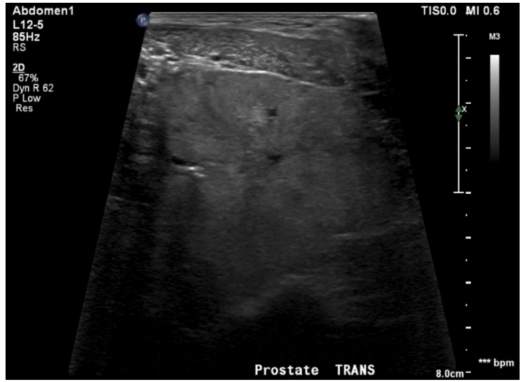 What are the ultrasound findings in benign prostatic hyperplasia?