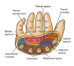 Contracture of the plamar fascia - is the thickening and shrinking of _____ _____, typically affecting ring and ling fingers. No know aetiology but thought to be inherited