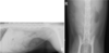 lateral horizontal beam showing mineralized fetal skeleton in thorax and abdomen; displaced uterus from previous trauma
