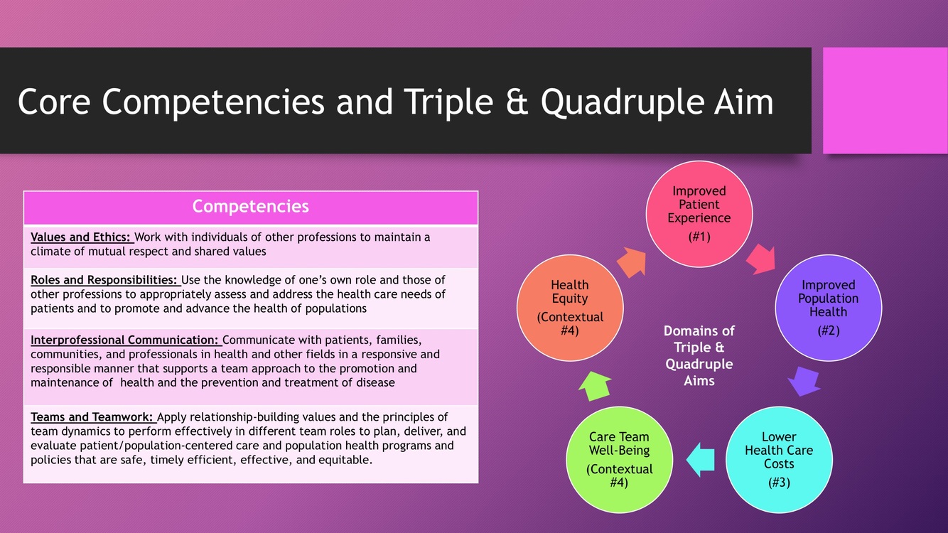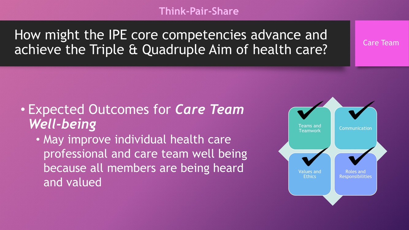 How might the IPE core competencies advance and achieve the Triple & Quadruple Aim of health care for care team well beings?