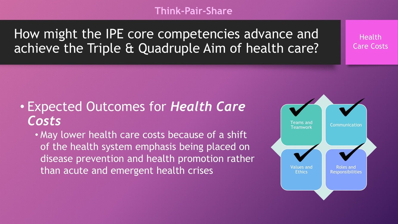 How might the IPE core competencies advance and achieve the Triple & Quadruple Aim of health care for health care costs?