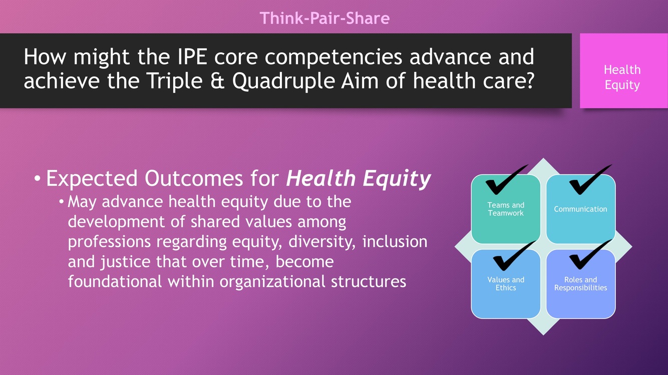 How might the IPE core competencies advance and achieve the Triple & Quadruple Aim of health care for health equity?