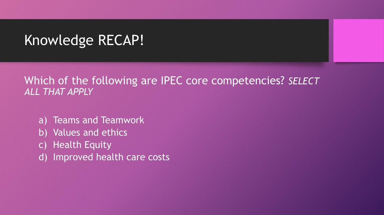 The other two are roles/responsibilities and interprofessional communication.