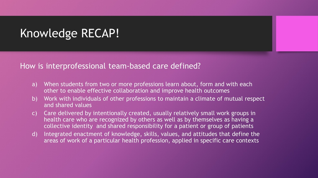 What is inter-professional team based care?