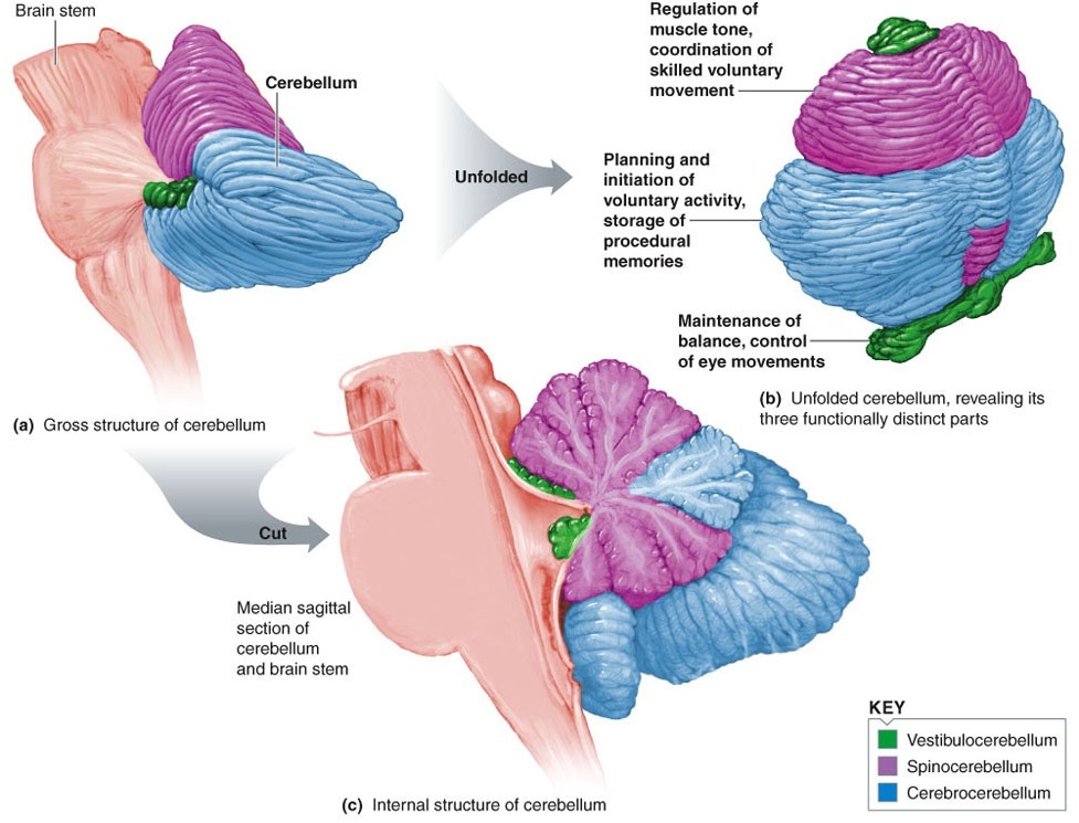 The cerebellum has 3 functional parts