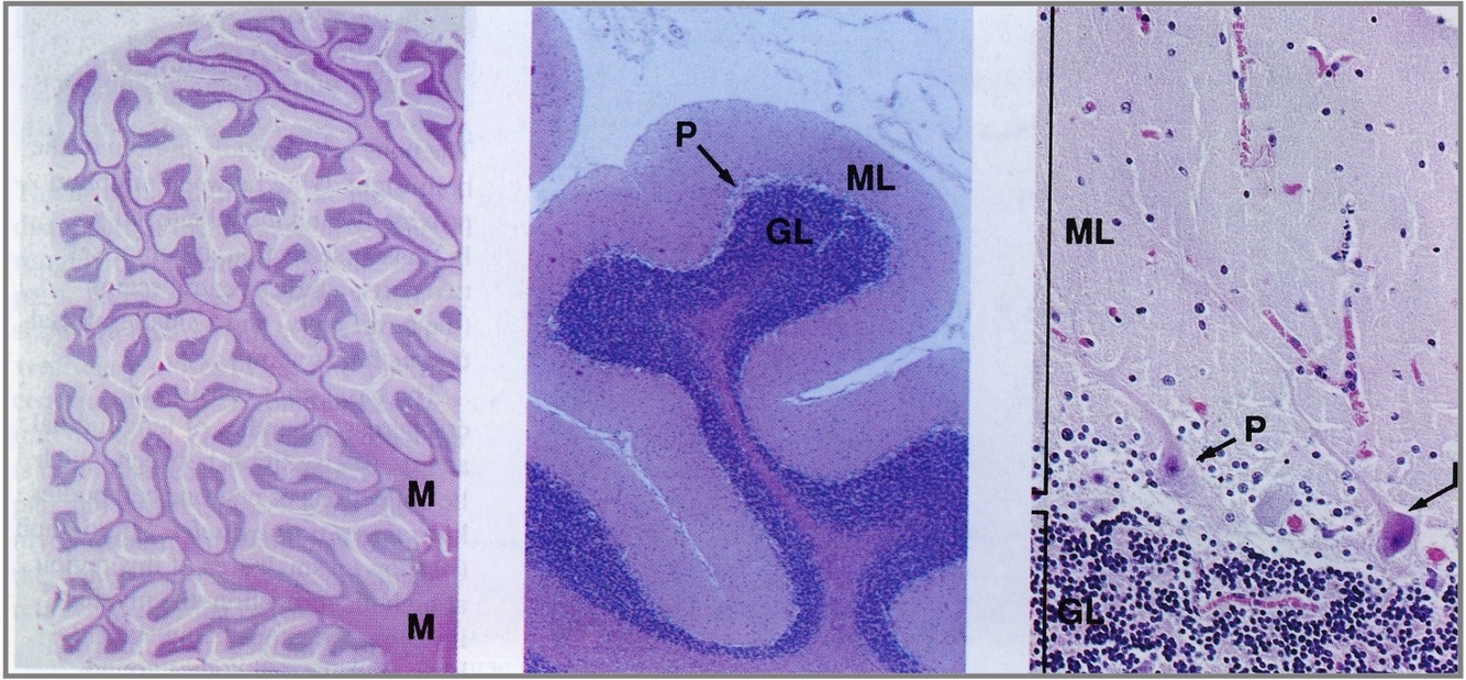 outer molecular layer, Purkinye layer, inner granular layer