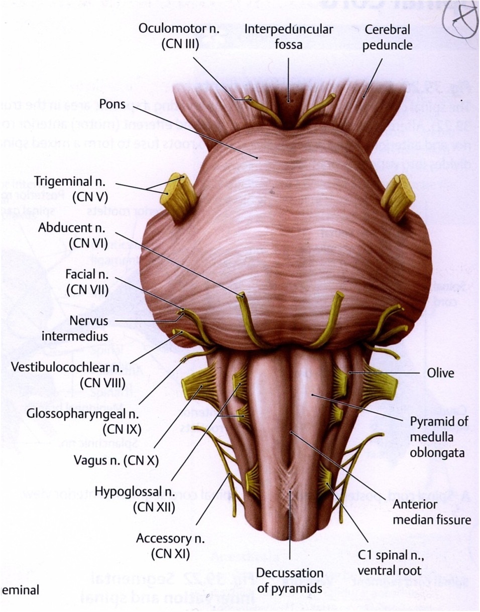 Brain stemorigin of cranial nerves
