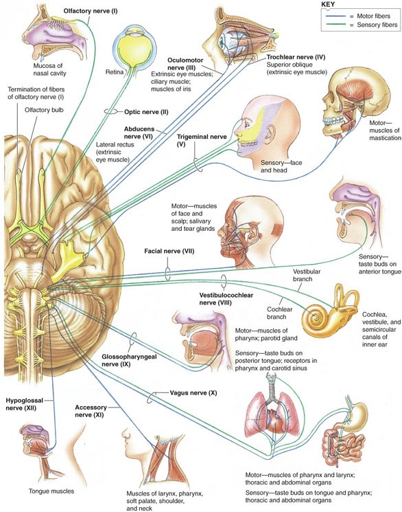 12 pairs of cranial nerves
