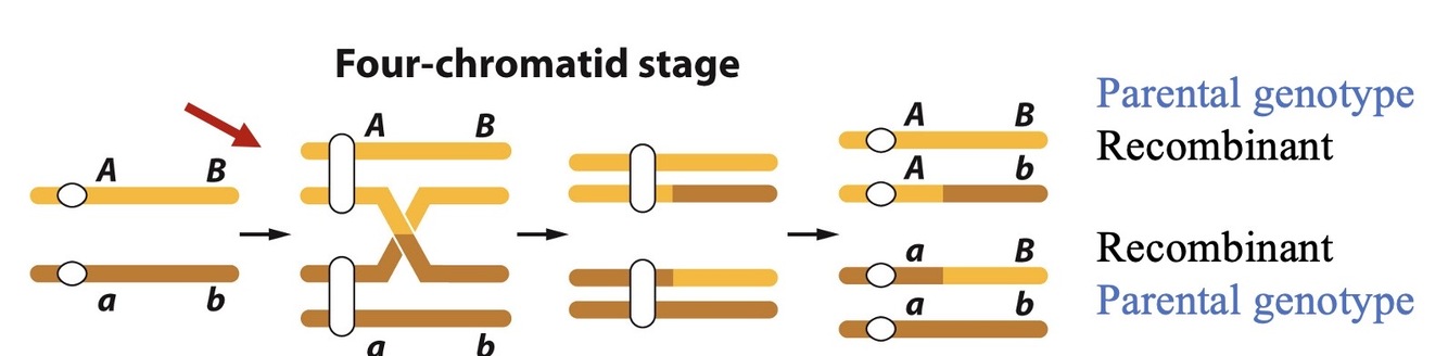 but we know that crossing over occurs at relatively early in the 4 chromatid stage (meiosis I).