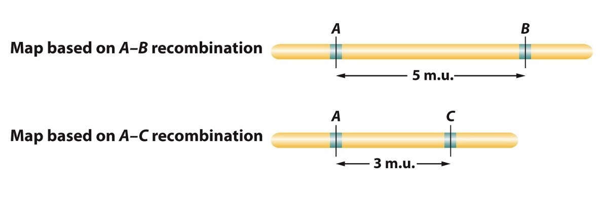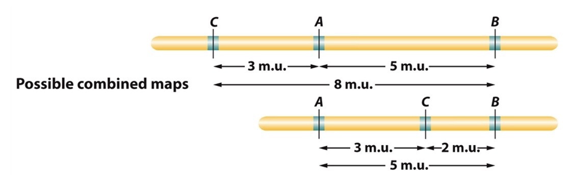 crosses (A-B & A-C) was performed that resulted in the map distances: A and B 5 units, A and C 3 units