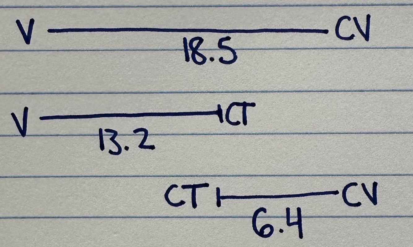 ct must be in between these, 6.4 from cv and 13.2 from v.