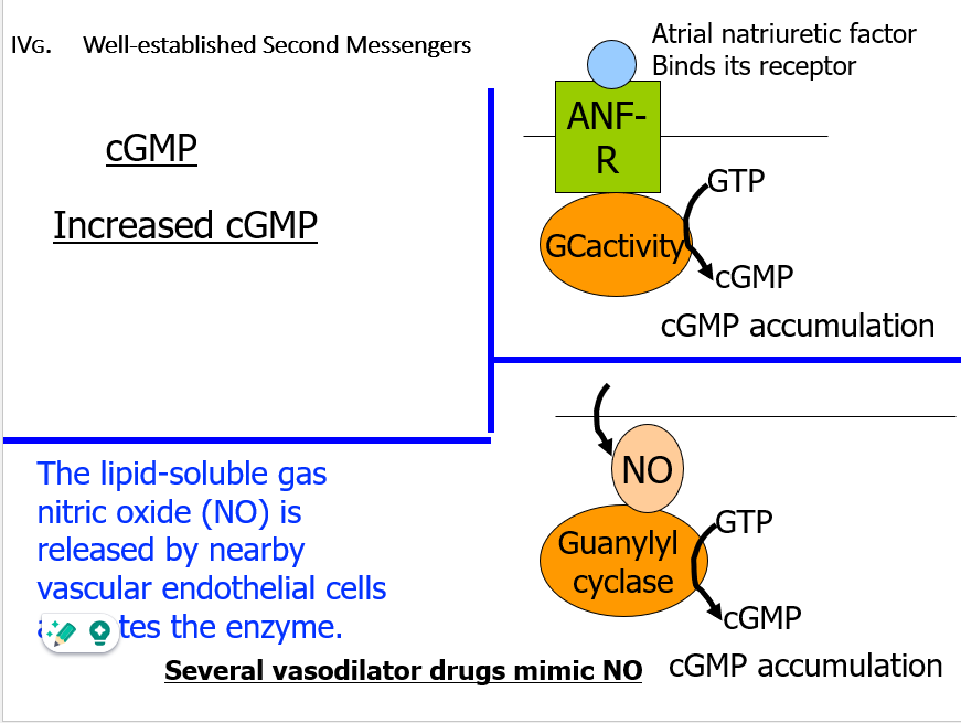 The lipid-soluble gas nitric oxide (NO) is released by nearby