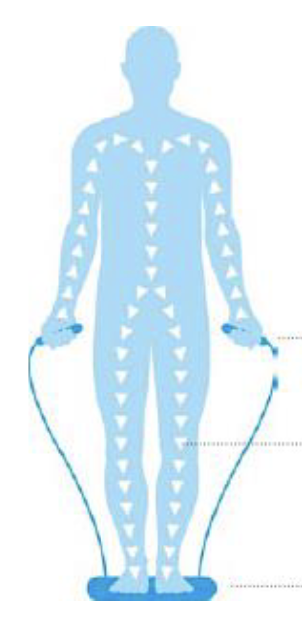 Measure voltage difference between the two point. FFM doesn’t impede current but fat mass does.